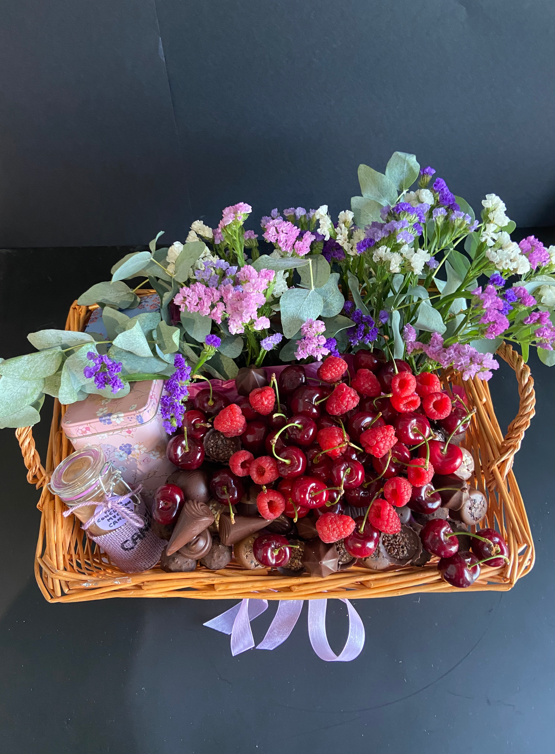 ¡Descubre nuestra cautivadora cesta repleta de tentadoras delicias! Una combinación sublime de jugosas bayas, deliciosas chocolatinas sin soja y dos cajas de té o infusiones, todo ello adornado con flores frescas y de larga duración. Un regalo único y sofisticado que cautivará los sentidos de tus seres queridos. Sorprende con este gesto elegante y exquisito, ¡haz tu pedido ahora y comparte momentos inolvidables!