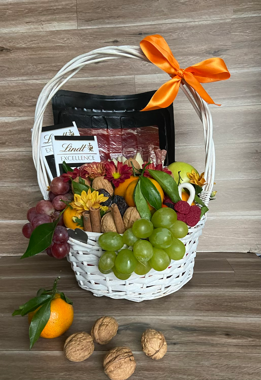 Frutas, jamón ibérico, chocolate 85%, frutos secos, chuches