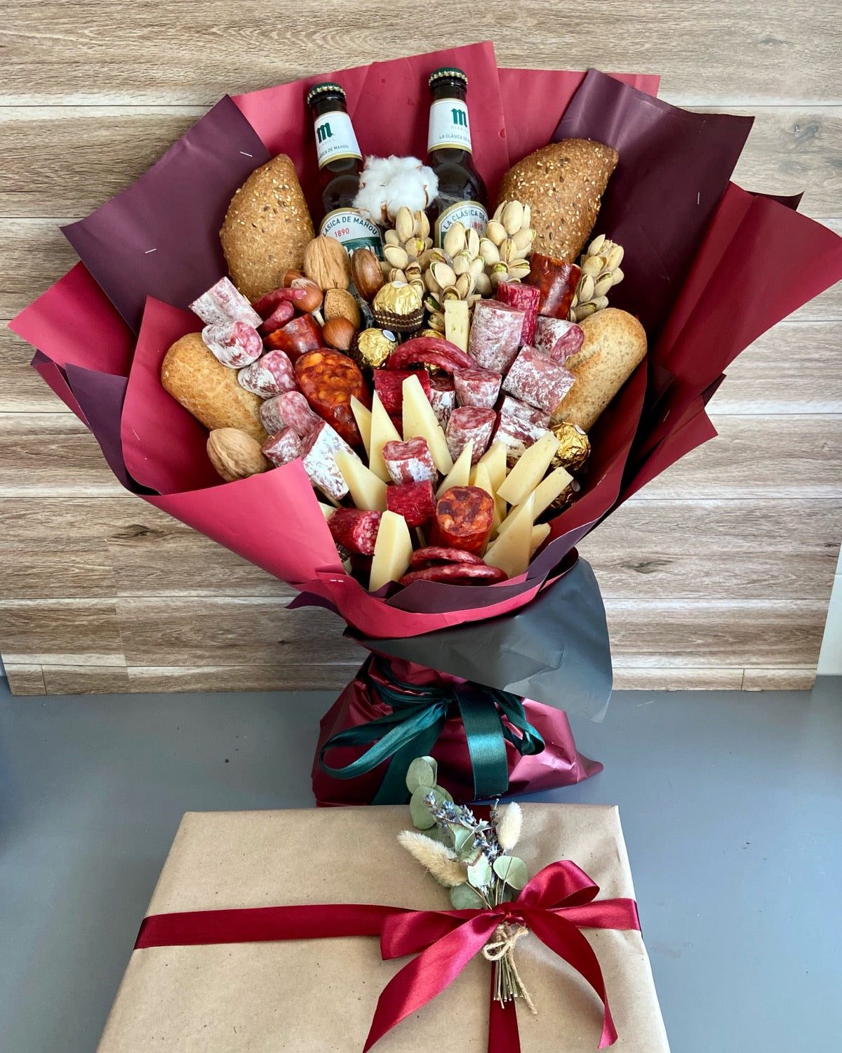 Queso , fuet, chorizo, frutos secos, 2 botellas de cerveza