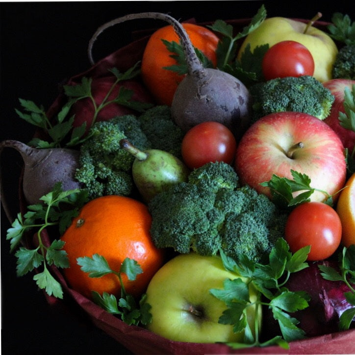 remolacha, pomelo rojo, tomate, mandarina, cebolla roja, pera,brocolli